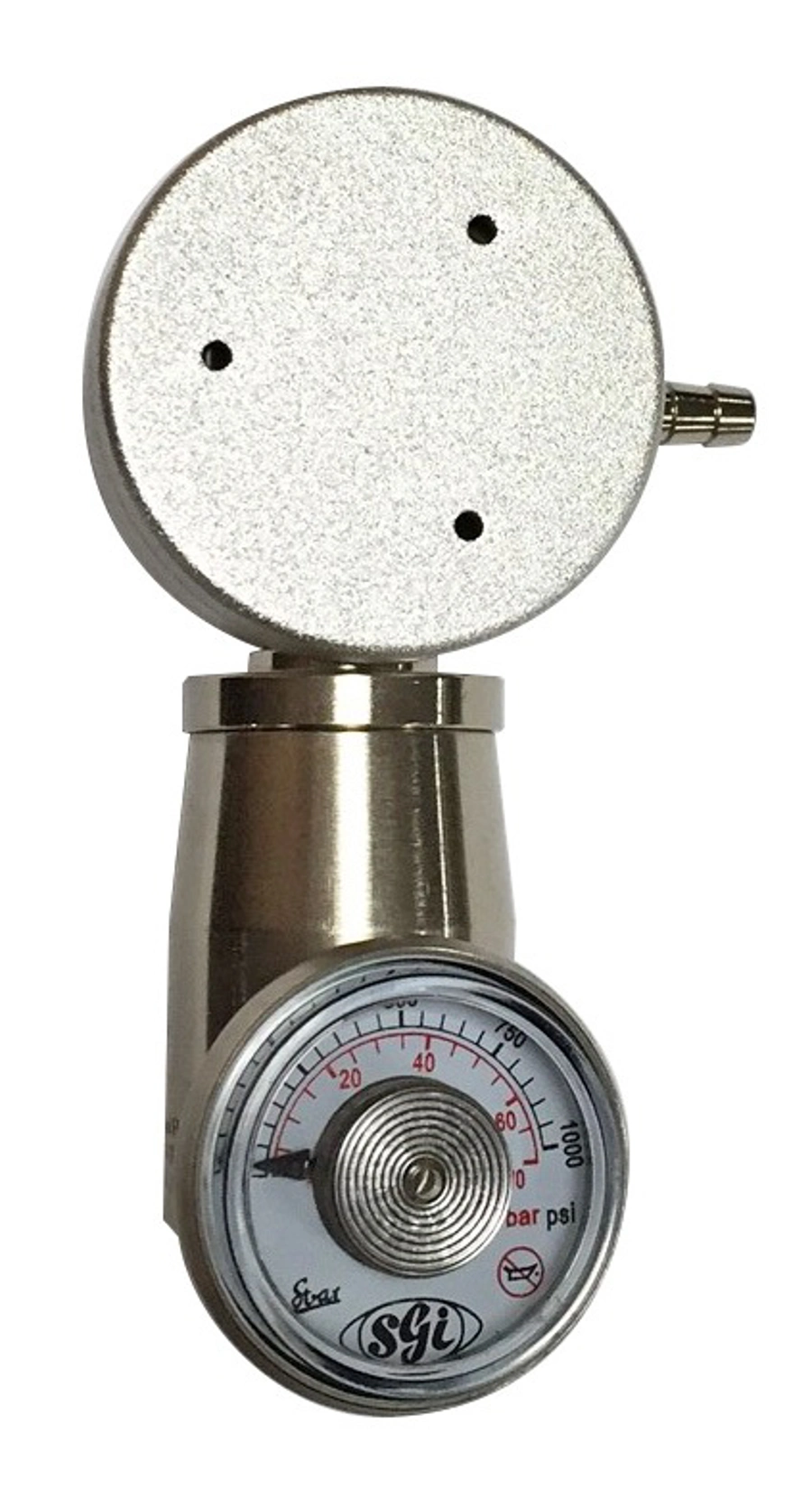 The regulator is compatible with 2AL, 8AL and 10AL disposable cylinders which features a C10 inlet fitting, female 5/8”. The regulator includes a pressure gauge and is made of Ni-Brass. The regulator supports both non-reactive gases and reactive gases.