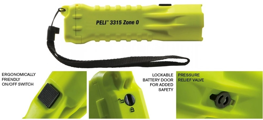 The lightweight compact design houses 3AA batteries that power a single LED for 110 lumens of super bright LED light. Batteries are supplied with the flashlight. The 3315Z0 LED light is one of the most efficient torches on the market today with safety approved for the most volatile work environments ATEX Cat. 1 (Zone 0).