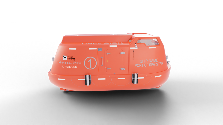VIKING Norsafe VNJY-55 totally enclosed lifeboat can seat up to 40 persons. A high quality boat with good stability in rough sea, built in accordance with IMO/SOLAS requirements, LSA Code and EC-MED.