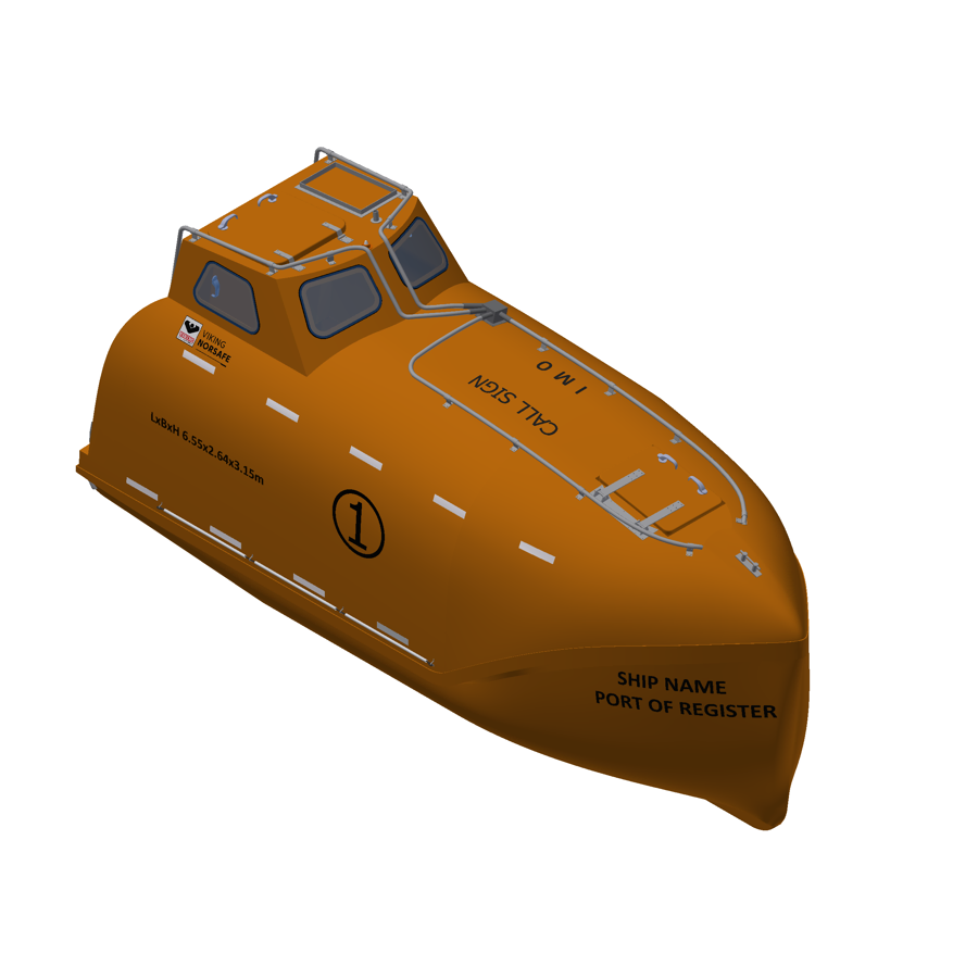 VIKING Norsafe GES-18 MKII free-fall lifeboat for skid-launched free fall drop can seat up to 18 persons. This robust free-fall lifeboat is tailor-made for rapid evacuation.