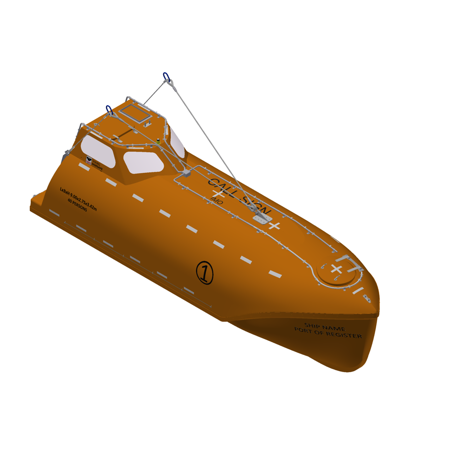 VIKING Norsafe GES-30 MKII free-fall lifeboat for skid-launched free fall drop can seat up to 39 persons. This robust free-fall lifeboat is tailor-made for rapid evacuation.