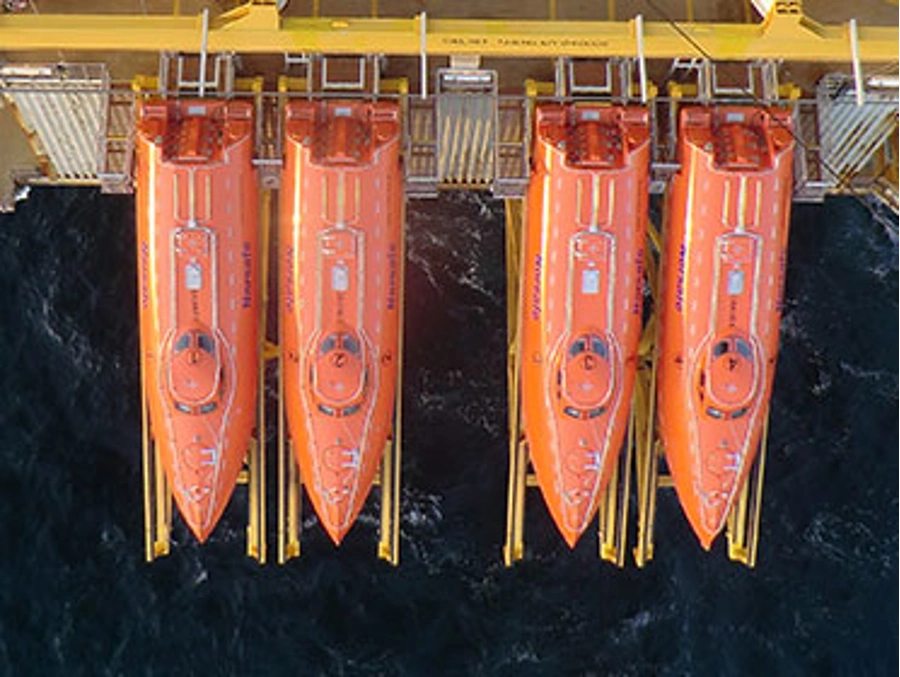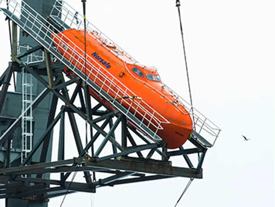 The VIKING Norsafe GES-45 free-fall lifeboat provides a secure and protected means of escape for persons onboard vessels or platforms. The lifeboat is for skid launch by a specific davit.