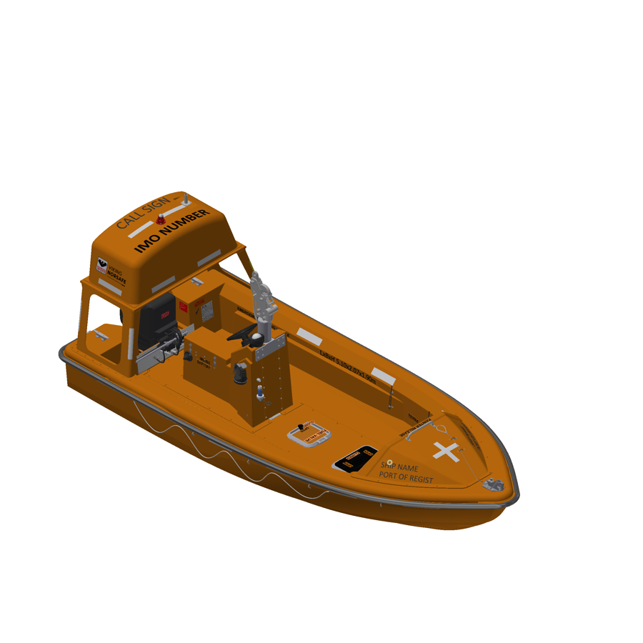 The VIKING Norsafe Midget-500 MKII with hook and saddle rescue boat has capacity for up to 6 persons. Rescue boat designed and manufactured according to latest SOLAS/IMO requirements, LSA Code and EC-MED.