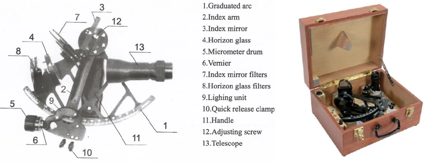 Nautical Sextant with Lighting in Mahogany Wood Case.